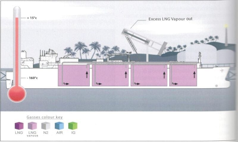 A successful warmup 🔥 of the cargo vapour achieves the maximum vapour density difference between the warm LNG Vapour and the Inert gas for the next stage, which improves the displacement effect while inerting.