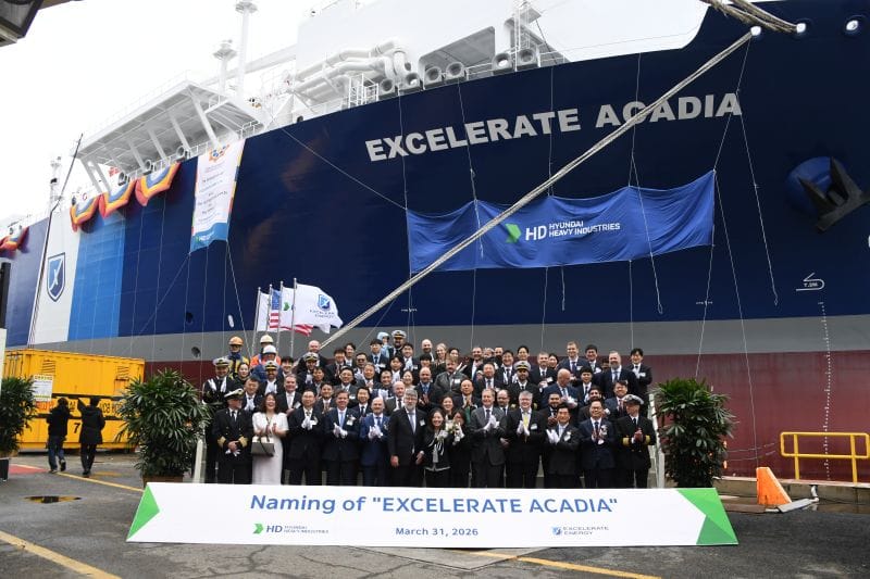 Excelerate Energy celebrated the naming ceremony for the newest floating storage and regasification unit (FSRU), officially named "Excelerate Acadia" 🎊 at the Hyundai Heavy Industries shipyard in Ulsan, South Korea.